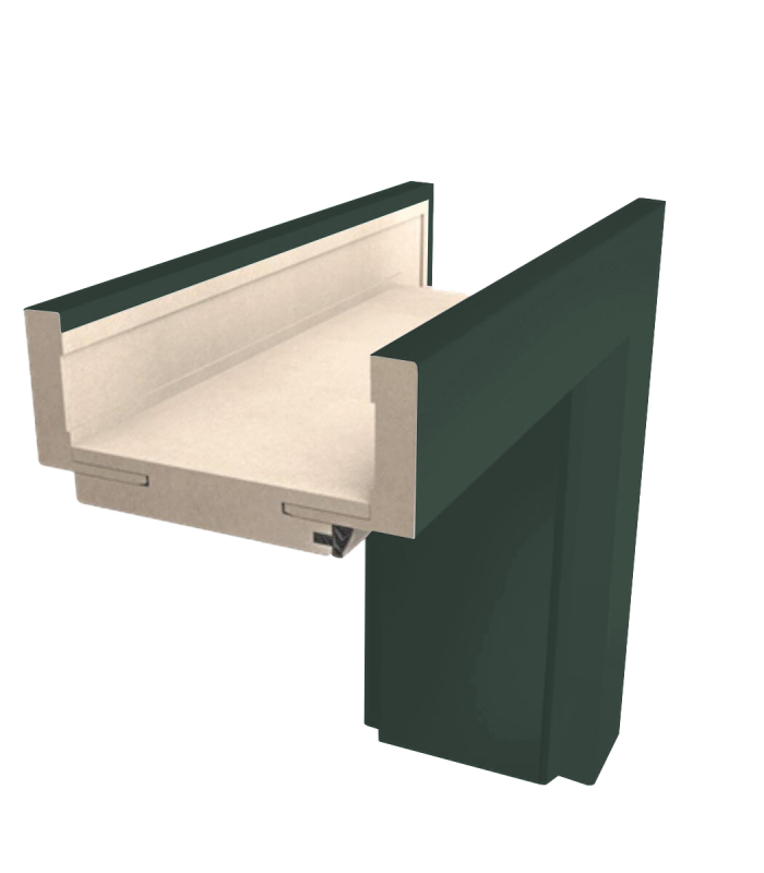 Pravá obložková zárubeň v barevném provedení oliva mat pro dveře o šířce 60 cm pro tloušťku stěny 7,5-9,5 cm. Ve 3d struktuře.