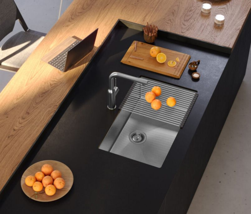Dřez z nerezové oceli se svým minimalistickým, moderním vzhledem hodí do aranžmá každé kuchyně. Hluboká a prostorná komora zajišťuje vysoký komfort používání. Výrobek má odtok, který odpovídá odstínu, takže celek působí velmi soudržně a elegantně. Sifon, který je součástí dřezu, je praktický model, který šetří místo. Díky uspořádání odtokových trubek můžete ve skříňce pod dřezem získat další prostor pro uložení obalů od pracích prostředků nebo nádob na odpad. Hygienický materiál a snadné čištění hladkých povrchů dodávají dřezu čistý vzhled a zabraňují růstu mikroorganismů.