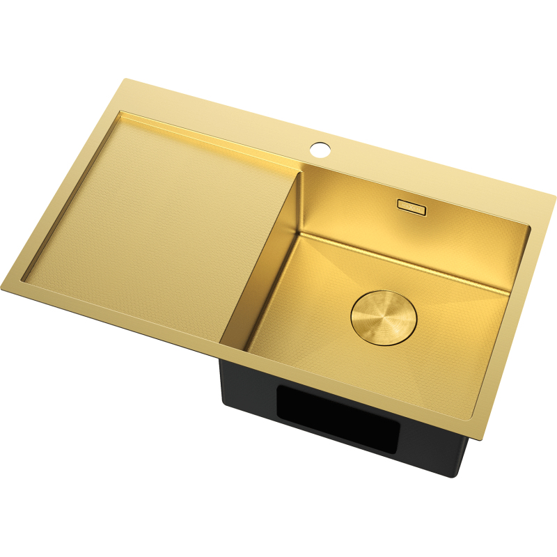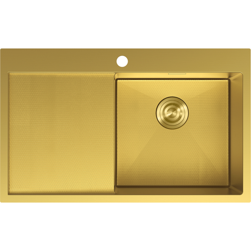 Ocelový dřez Mexen Exar s jedním dřezem a odkapávačem, pravý, 780 x 480 mm, zlatá HC - 6434781010P-55HC