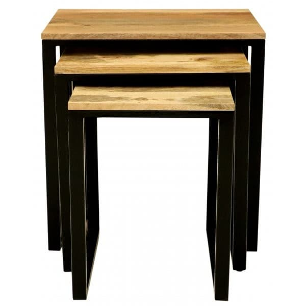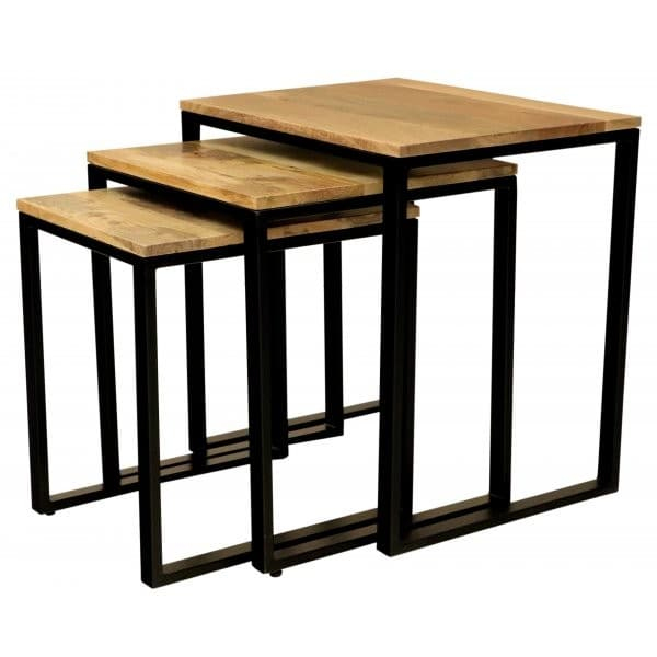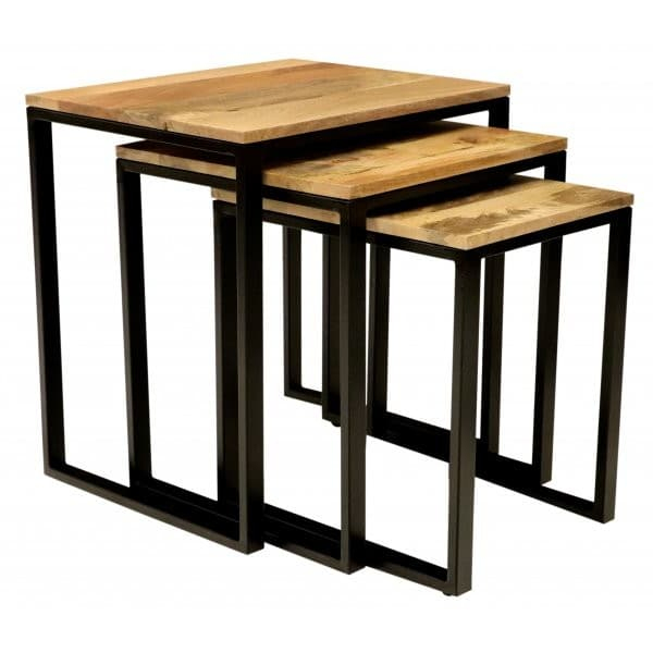 Spojení přírodního dřeva a kovové konstrukce v naší kolekci odkládacích stolků z masivu mango dodává stolkům industriální vzhled. Prozkoumejte širokou škálu malých konferenčních stolků, vhodných jako příruční, přístavný nebo servírovací stolek a dokonce i jako stolek na květiny. Každý set obsahuje 3 kusy odkládacích stolků o rozměrech: 50x53x40 cm, 40x48x40 cm, 30x43x40 cm (ŠxVxH). Objednejte si masivní koloniální nábytek ještě dnes a udělejte z vašeho domova útulné místo.