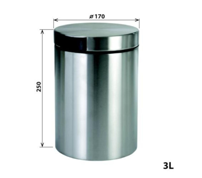 Elegantní koupelnový odpadkový koš, o objemu 3 L, matný nerezový a se snadno vyjímatelnou umělou nádobou, která se lehce umyje, je tento koš velmi praktický koupelnový doplněk.