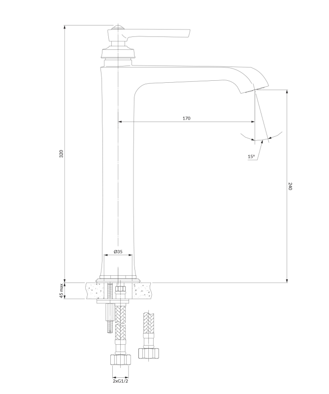 ARMANCE | vysoká umyvadlová baterie, 32 cm