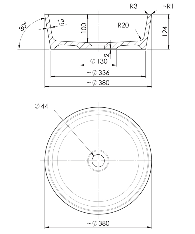 Umyvadlo na desku BARI Mramor+, ø38 cm
