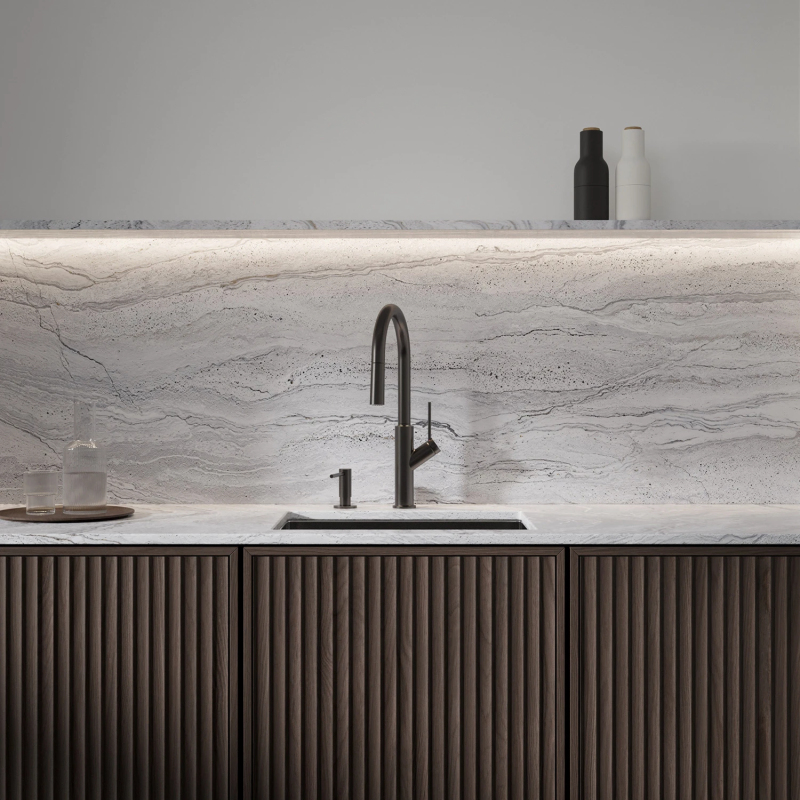 Grafit je zajímavá povrchová úprava v odstínu metalické šedé, se saténovým, kartáčovaným povrchem.