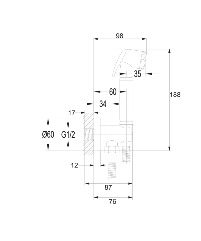BIDETTA | bidetová sada ruční sprchy pro podomítkovou instalaci
