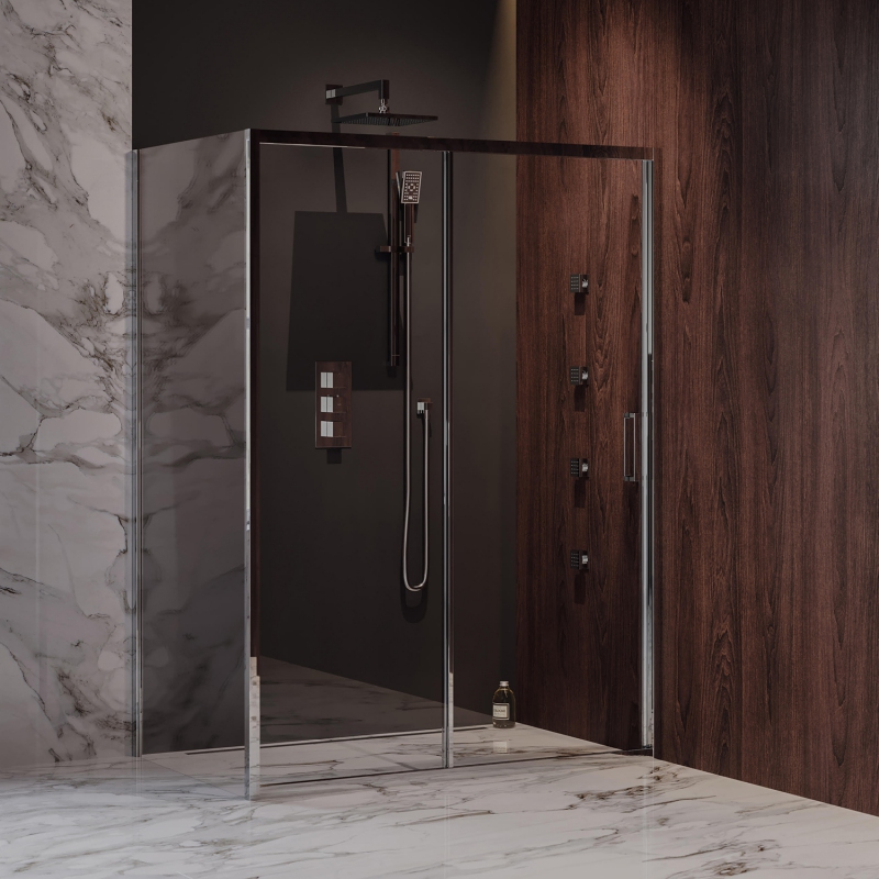 Profily bez otvorů zjednodušují instalaci sprchového koutu a vylepšují jeho celkový vzhled. Pro účely čištění lze skleněné dveře snadno odříznout z profilů.
