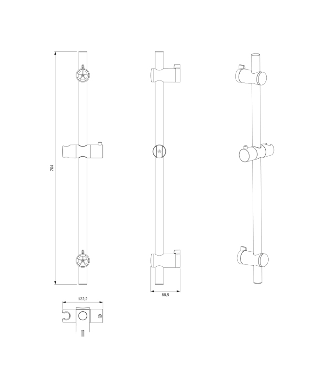 délka: 70 cm, nastavitelná vzdálenost mezi montážními konzolami: 24-66 cm