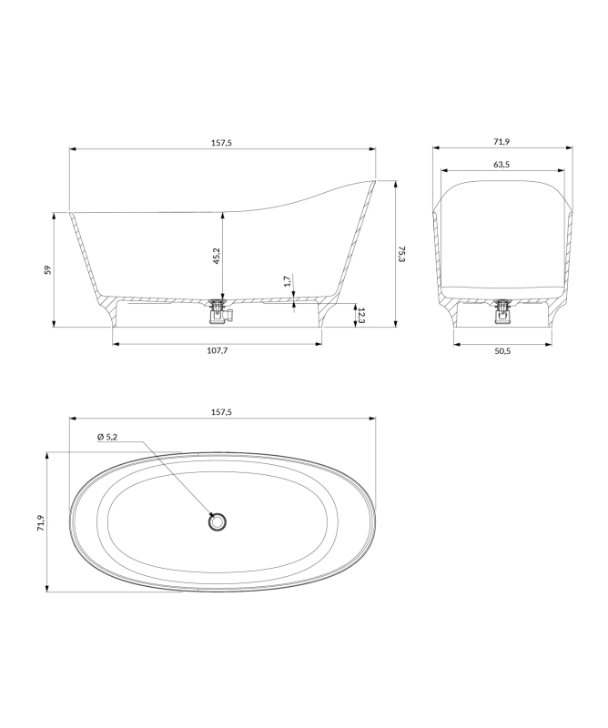 Omnires NEO M+ NEO158SWWBM Vana volně stojící 158x72cm, litý mramor, bílá mat
