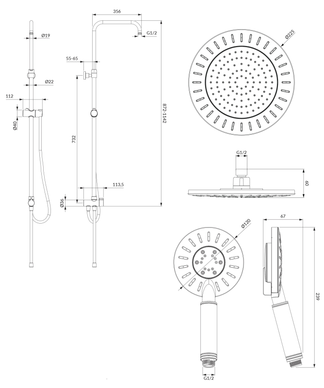 ruční sprcha (NEVADA-RCRB), 3-funkce, proudy: déšť, turbo, masáž