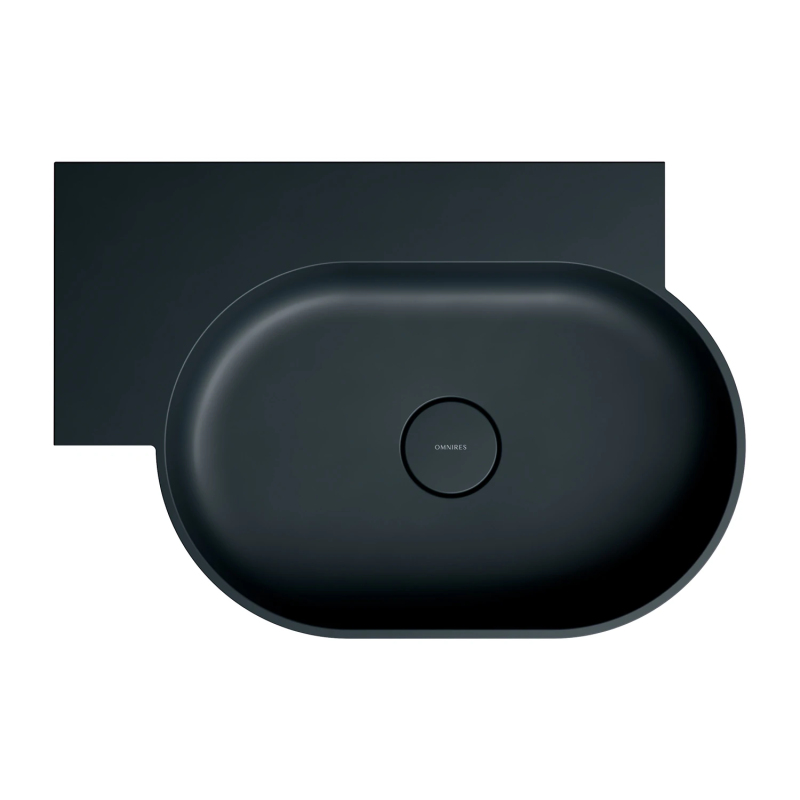 Omnires Ovo M+ umyvadlo na desku / závěsné – levé, 64 × 44 cm, black lava mat OVO645UWLBLV