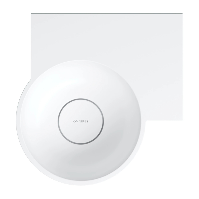 Umyvadlo z kolekce OMNIRES OVO se vyznačuje minimalistickou a expresivní siluetou s bezchybnými proporcemi. Design, zrozený z hravého přístupu ke geometrii, kombinuje kulaté umyvadlo s obdélníkovou, funkční poličkou - ideální pro instalaci umyvadlové baterie a pro odložení kosmetiky a dalších nezbytností denní potřeby. Harmonicky tvarované stěny končí plochým okrajem, který zdůrazňuje tvar umyvadla, zatímco dokonale sladěný kryt odtoku zaručuje bezchybnou estetiku. Diskrétní, továrně vyrobené podříznuté body na spodní straně označují, kde lze vyříznout otvory pro baterii nebo dávkovač, což umožňuje flexibilní přizpůsobení armatur individuálním potřebám.