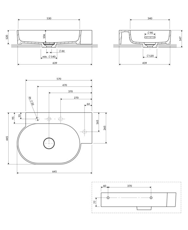 Umyvadlo z kolekce OMNIRES OVO se vyznačuje minimalistickou a expresivní siluetou s bezchybnými proporcemi. Design, zrozený z hravého přístupu ke geometrii, kombinuje dva protilehlé půlkruhy mísy s obdélníkovou, funkční poličkou – ideální prostor pro instalaci baterie i pro odložení kosmetiky či jiných nezbytností denní potřeby. Harmonicky tvarované stěny končí plochým okrajem, který zdůrazňuje tvar umyvadla, zatímco dokonale sladěný kryt odtoku zaručuje bezchybnou estetiku. Diskrétní, továrně vyrobené podříznuté body na spodní straně označují, kde lze vyříznout otvory pro baterii nebo dávkovač, což umožňuje flexibilní přizpůsobení armatur individuálním potřebám.