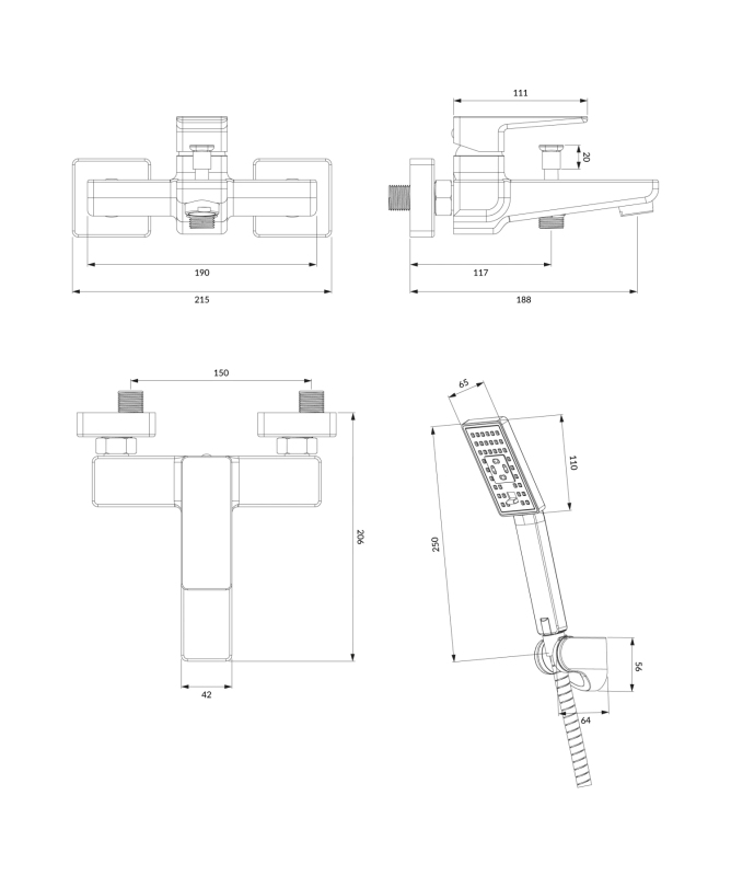 ruční sprcha, 3 funkce, proudy: déšť, bič, smíšený