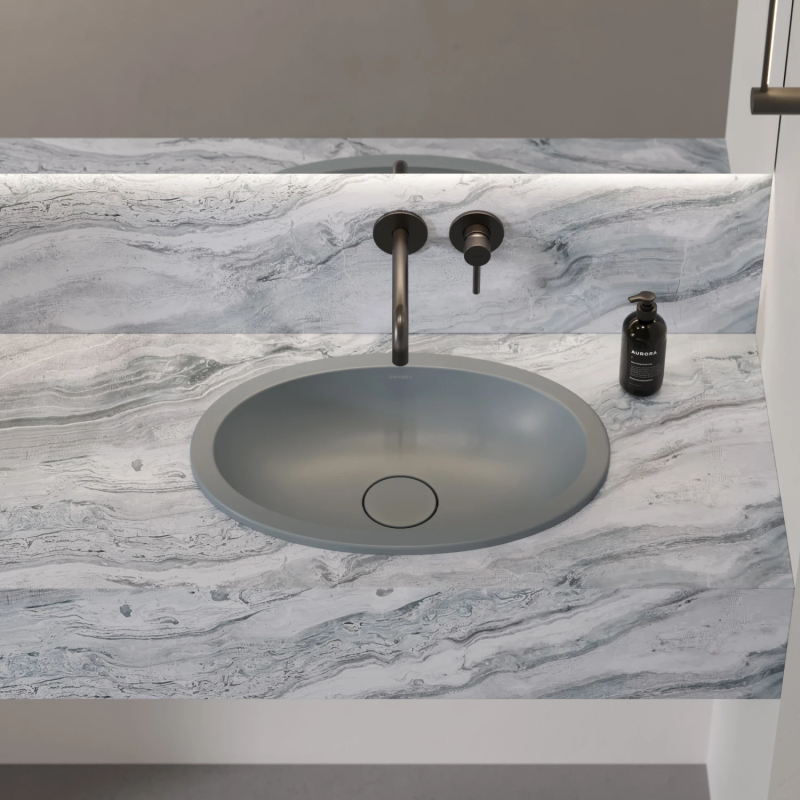 Umyvadlo pod desku z kolekce OMNIRES SHELL M+ má elegantní, moderní eliptický design, který se jemně zužuje směrem ke dnu. Jeho optimální rozměry jsou ideální pro koupelny s jednoduchými i dvojitými umyvadly. Přesně navržený okraj umožňuje montáž umyvadla pod pracovní desku, což zajišťuje hladký a jednotný povrch. Alternativně lze umyvadlo instalovat v jedné rovině s pracovní deskou, přičemž na povrchu je viditelný pouze minimalistický okraj. Obě montážní řešení nejen usnadňují každodenní péči, ale také optimálně využívají prostor, díky čemuž je umyvadlo ideální volbou pro moderní a minimalistické interiéry.