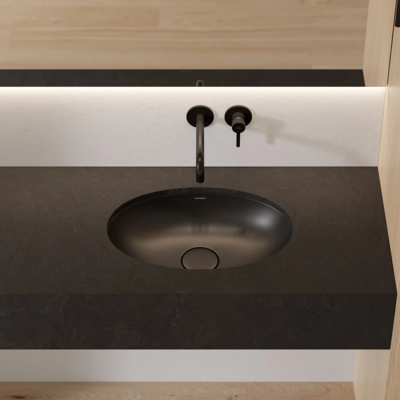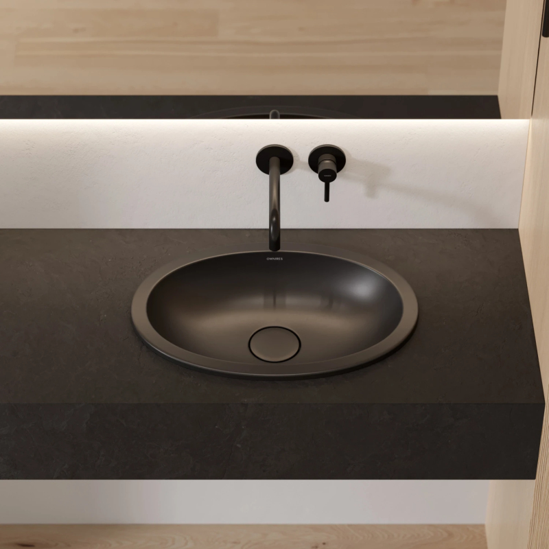 Umyvadlo pod desku z kolekce OMNIRES SHELL M+ má elegantní, moderní eliptický design, který se jemně zužuje směrem ke dnu. Jeho optimální rozměry jsou ideální pro koupelny s jednoduchými i dvojitými umyvadly. Přesně navržený okraj umožňuje montáž umyvadla pod pracovní desku, což zajišťuje hladký a jednotný povrch. Alternativně lze umyvadlo instalovat v jedné rovině s pracovní deskou, přičemž na povrchu je viditelný pouze minimalistický okraj. Obě montážní řešení nejen usnadňují každodenní péči, ale také optimálně využívají prostor, díky čemuž je umyvadlo ideální volbou pro moderní a minimalistické interiéry.