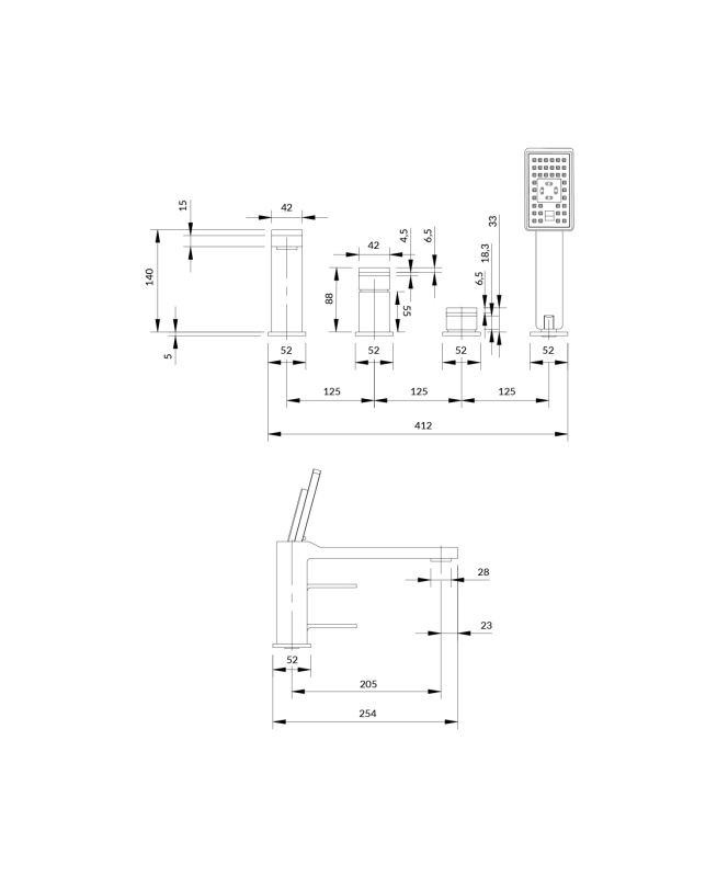 dosah výtoku: 20,5 cm, výška odtoku vody: 12,2 cm