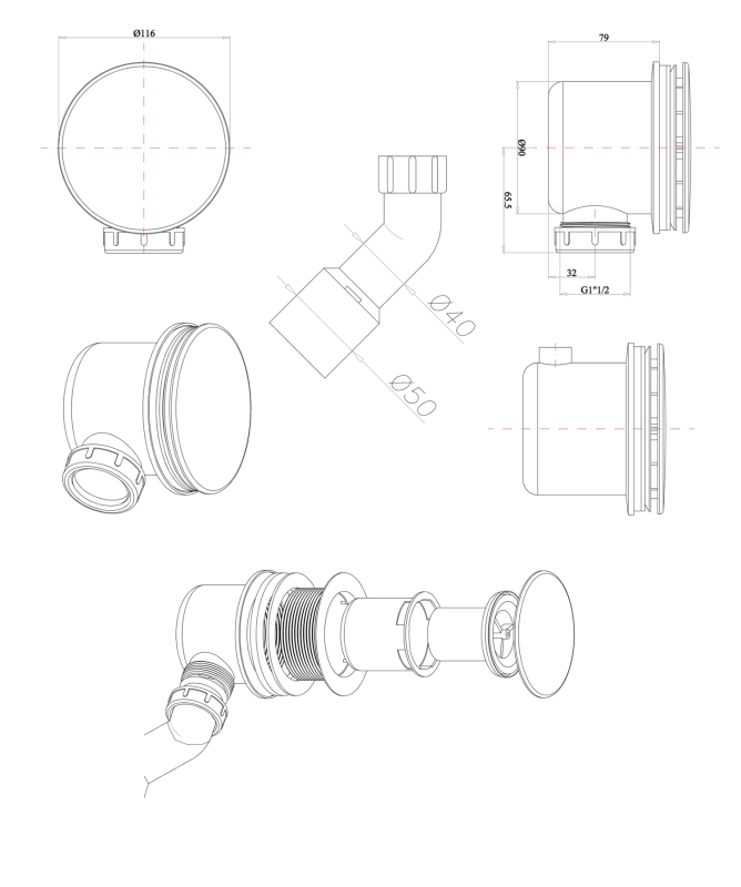 pro sprchové vaničky s průměrem odtoku ø9 cm
