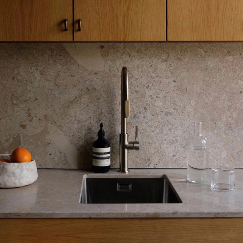Výrobek je vyroben z vysoce kvalitní mosazi a vybaven nejkvalitnější keramickou hlavou s technologií COLD START. Díky tomu se proud na mytí rukou a nádobí standardně otevírá studenější vodou, což šetří energii a spotřebu teplé vody. Vertikální výchozí poloha baterie umožňuje instalaci baterie blízko zdi, aniž byste se museli starat o prostor potřebný k jejímu otočení pro otevření zdroje vody.