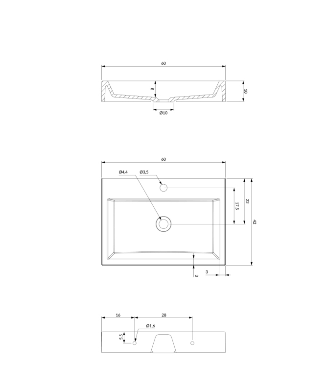 Pultové/nástěnné umyvadlo THASOS Mramor+, 60 x 42 cm