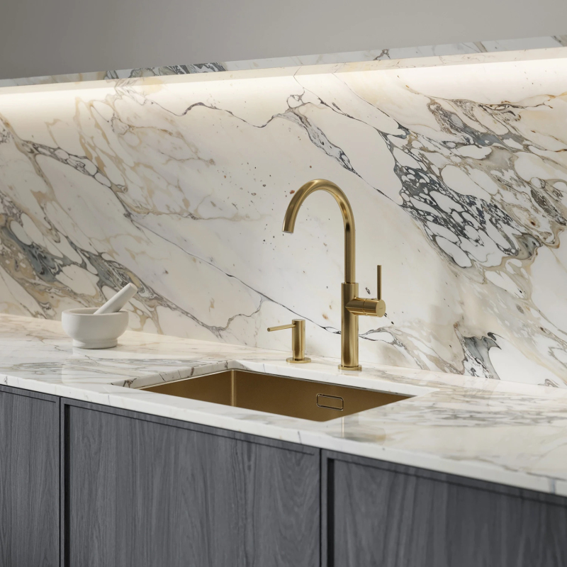 Kartáčovaná mosaz je sofistikovaná povrchová úprava se studeným zlatým odstínem a saténovým kartáčovaným povrchem.