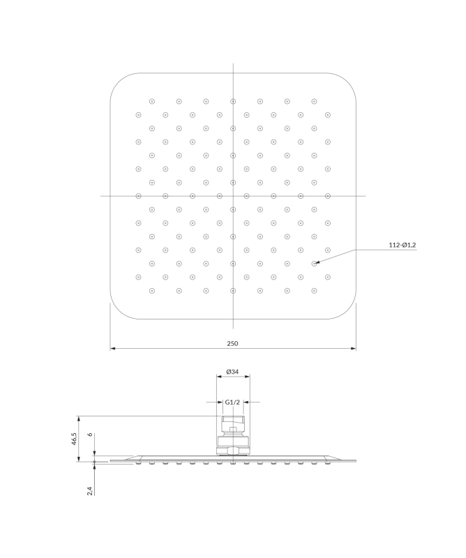 ULTRA SLIMLINE | sprchová hlavice, 25 x 25 cm