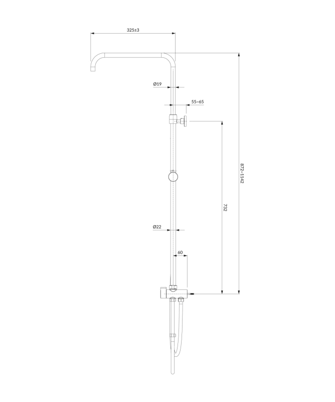 sprchový sloup s mosazným přepínačem a ramenem pro montáž sprchové hlavice