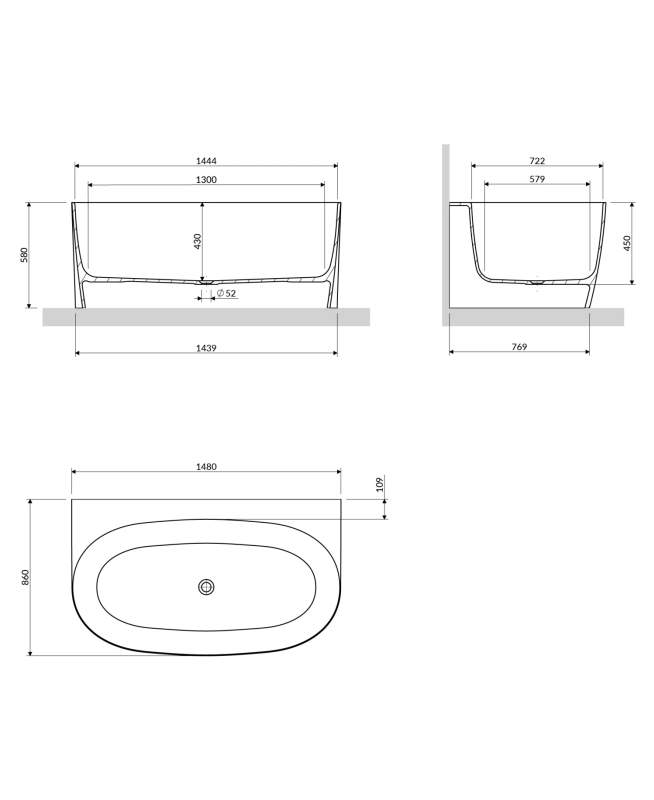 Omnires Valencia M+ vana k instalaci ke stěně, 148 × 86 cm matná bílá VALENCIA148WPBM