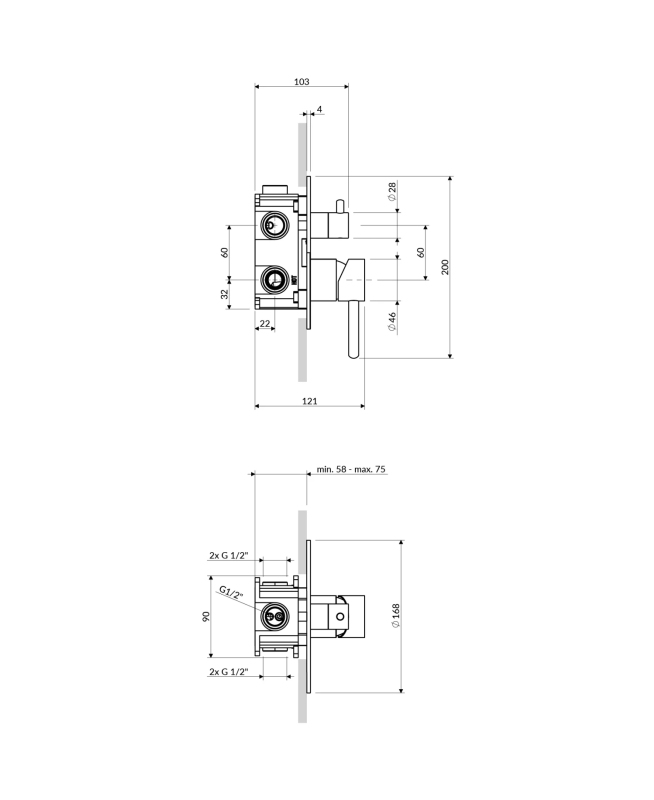 Pro kompletaci sprchové/vanové baterie je nutné dokoupit vestavný díl:BOX48X, vybavený mosazným tělesem a kvalitní termostatickou kartuší.