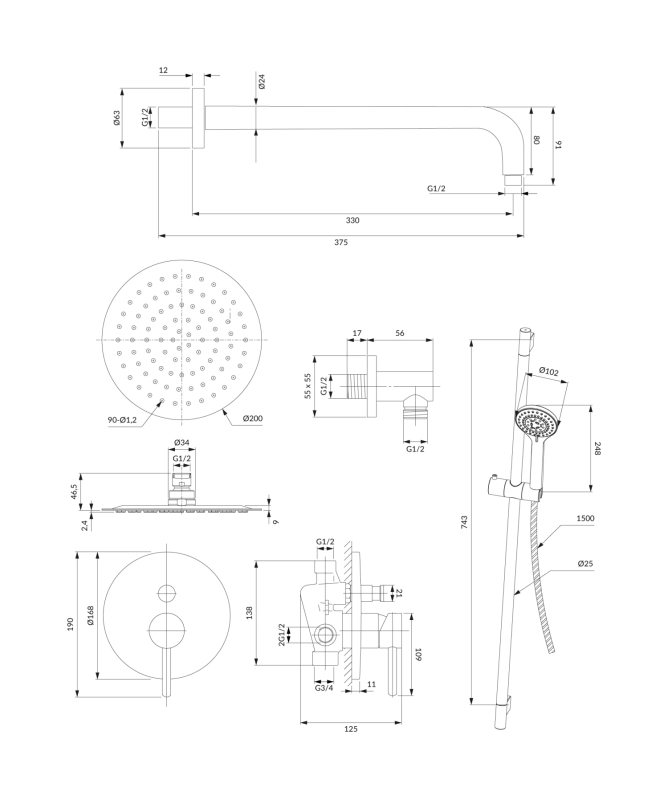 posuvná sprchová sada (YOSEMITE-SCR) s 5-funkční ruční sprchou