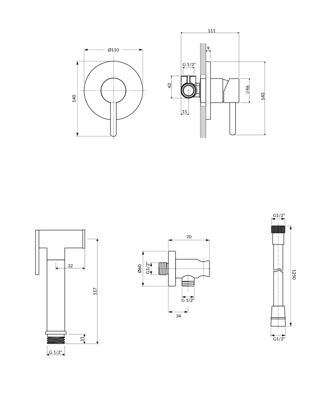 Omnires Y SYSYBI1CR Podomítkový bidetový set, chrom