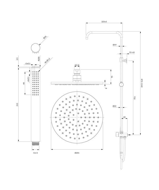 Y | nástěnný sprchový sloup