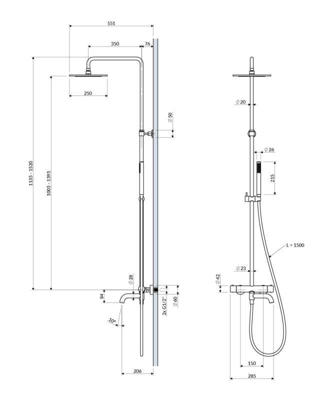 ✔ Mosazná sprchová hlavice ø25 cm – dosah od zdi 42 cm