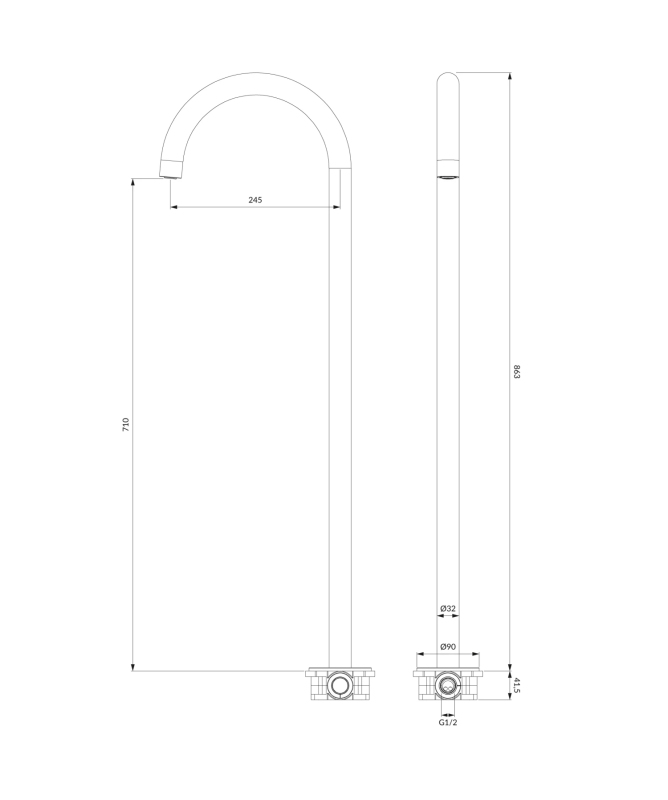 Dosah výtoku vanového výběžku je 24,5 cm, výška odtoku vody je 71 cm a celková výška výtoku je 86,3 cm.