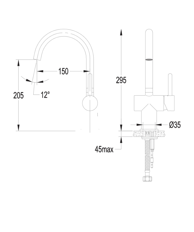dosah výtoku: 15 cm