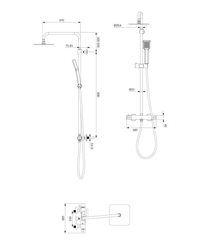 Omnires Y Y1244JBL Sprchový set s termostatickou baterií, černá