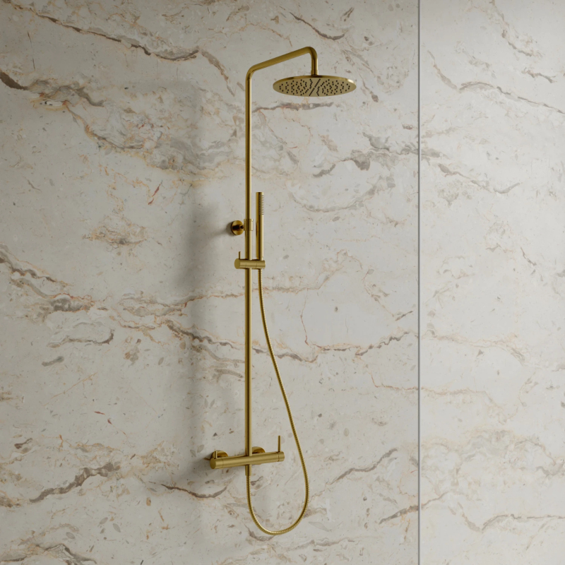 Tento sprchový systém obsahuje sprchovou baterii, která Vám umožní snadno regulovat teplotu a průtok vody pro dokonalou sprchovou zkušenost. Kromě toho je součástí systému mosazná sprchová hlavice o průměru 25 cm s dosahem od stěny 42 cm, která poskytuje příjemný proud vody. K dispozici je také mosazná ruční sprcha s jednou funkcí pro pohodlné a cílené sprchování.