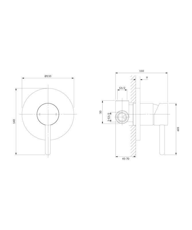dva 1/2 ”vstupy (studená a horká voda), jeden 1/2” výstup pro smíšenou vodu