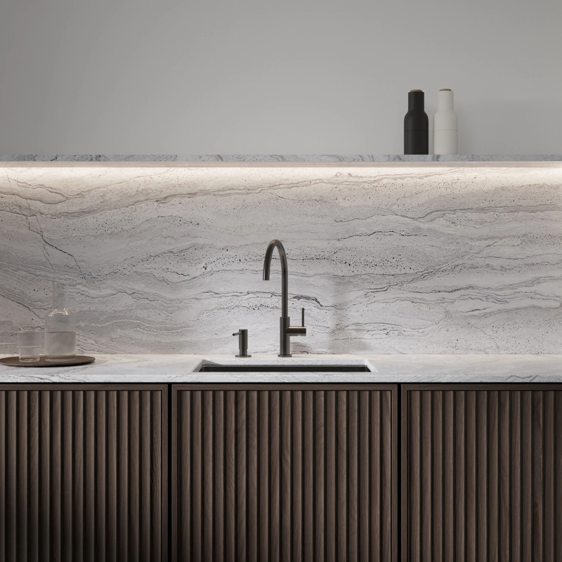 Jeho nadčasový a dokonale propracovaný design, vytvořený v duchu minimalismu, nabízí nespočet designových možností. Baterie je vybavena otočným výtokem, který zvyšuje jeho funkčnost. Baterie je vyrobena z vysoce kvalitní mosazi a je vybavena vysoce kvalitní keramickou kartuší.