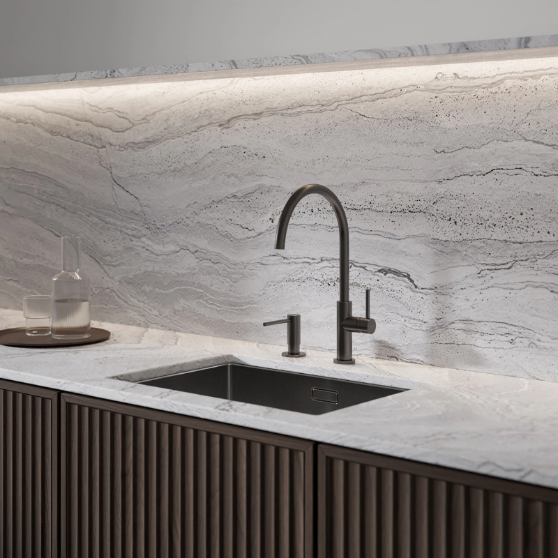 Kuchyňská dřezová baterie OMNIRES Y svou čistou linií a dokonalým tvarem vyjadřuje vášeň pro honbu za ideálem.