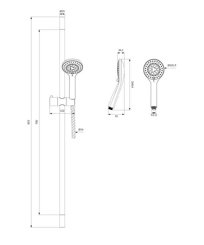 ruční sprcha, 5 funkcí, proudy: masáž, mlha, déšť, vzdušná masáž, vzdušná mlha