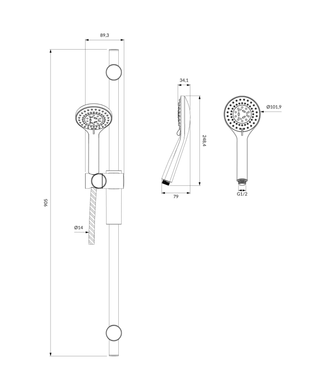 ruční sprcha, 5 funkcí, proudy: masáž, mlha, vzdušný déšť, vzdušná masáž, vzdušná mlha