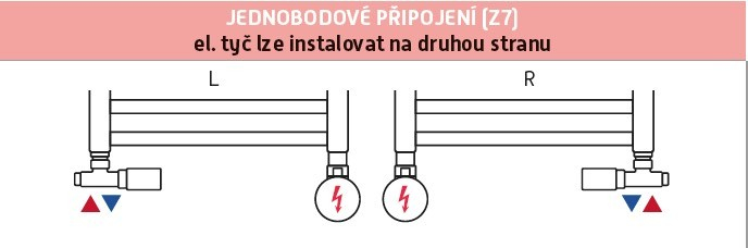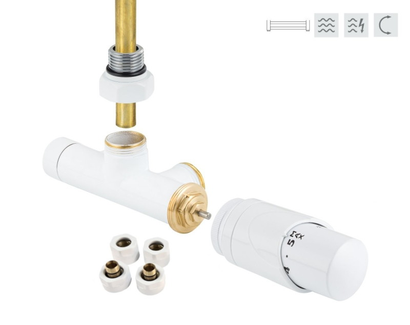 Ventil je určen pro připojení radiátorů na rozvody TUV s vývodem ze zdi. Elektrickou topnou tyč lze instalovat na libovolnou stranu radiátoru, nelze instalovat do ventilu.