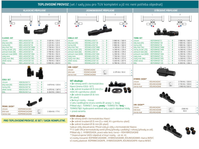 pro klasické středové radiátory: pro teplovodní i kombinovaný provoz