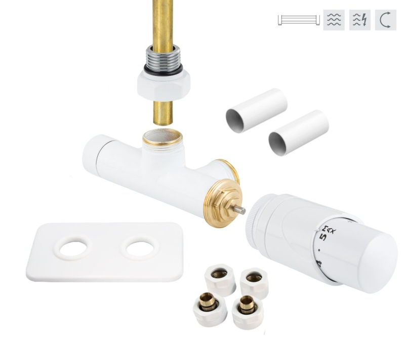 Pro kombinovaný provoz u klasických radiátorů musíte objednat sadu + el. tyč v doporučeném výkonu, kterou můžete instalovat vlevo nebo vpravo do radiátoru.