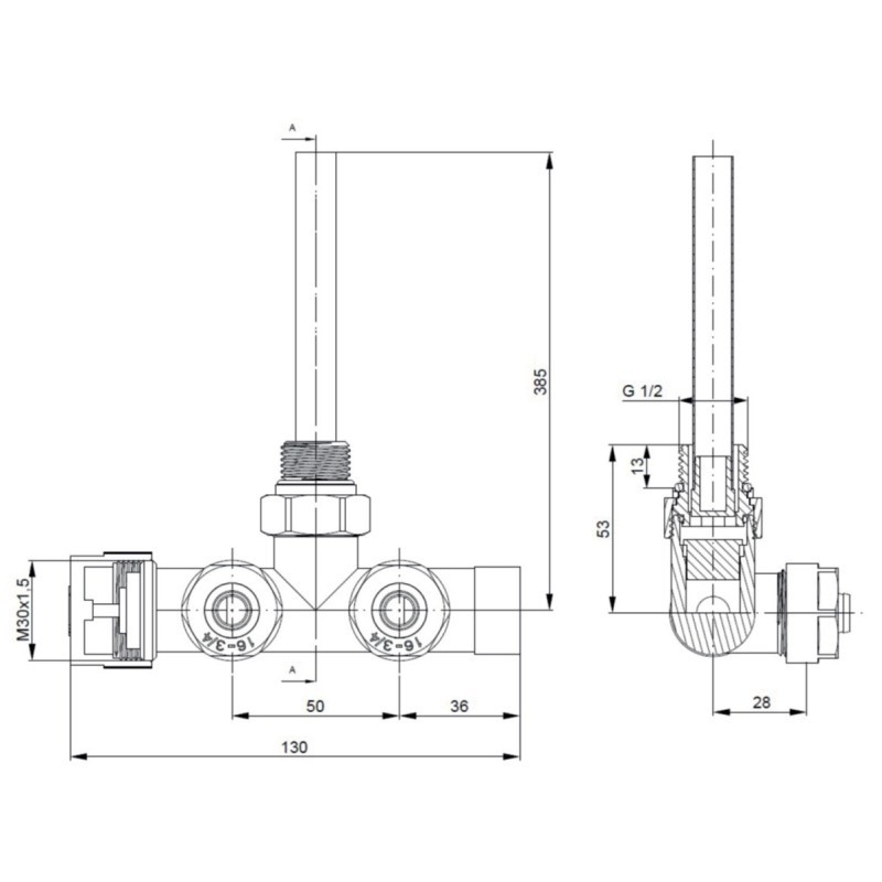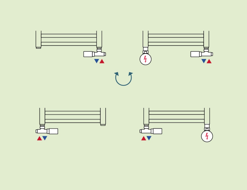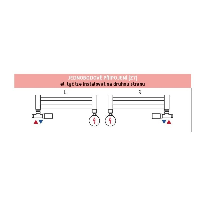 Pro kombinovaný provoz u klasických radiátorů musíte objednat sadu + el. tyč v doporučeném výkonu, kterou můžete instalovat vlevo nebo vpravo do radiátoru.