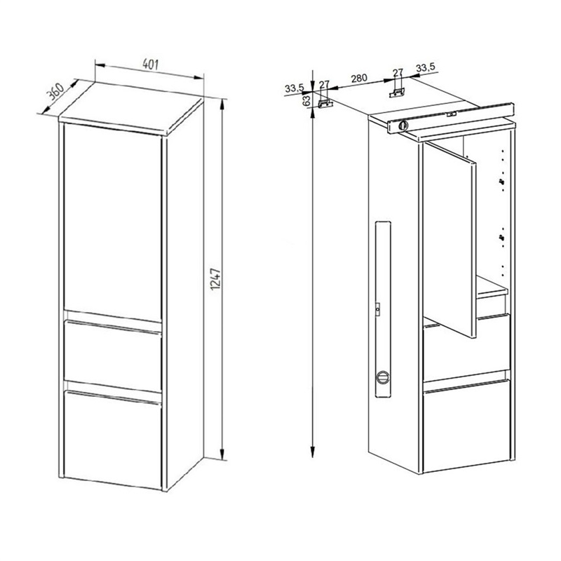 Opto, koupelnová skříňka, vysoká, závěsná, dvířka a 2 zásuvky, pravé otevírání, bílá lesklá, 400x1250x360 mm. Zobrazit více