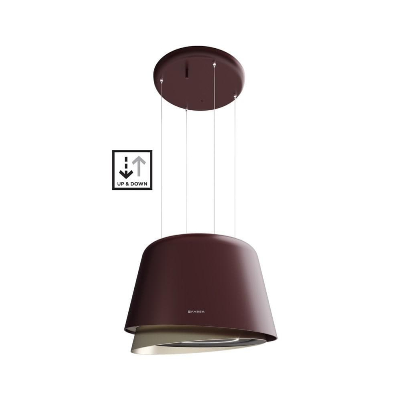 Luxusní ostrůvková digestoř Faber BELLE PLUS v kombinaci burgundské červené a teplé titanové. Elektromechanicky se spouští nad varnou desku a ovládá se dálkově (součástí). Štěrbinové sání, obvodové LED, doběh i ventilace 24 h, možnost propojení K‑LINK. Šířka 70 cm, standardně recirkulace s uhlíkovým filtrem.