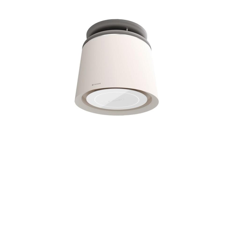 Ostrůvková digestoř Faber CELINE PLUS WW/CG MATT KL (60 cm) v bílém a cementově šedém matu. Elektromechanicky sjíždí k varné desce, štěrbinové sání, obvodové LED 4000 K. Dotyk + dálkově, K-LINK. Recirkulace s uhlíkovým filtrem, výkon až 620 m³/h, max 65 dB, A. 24h ventilace, doběh.