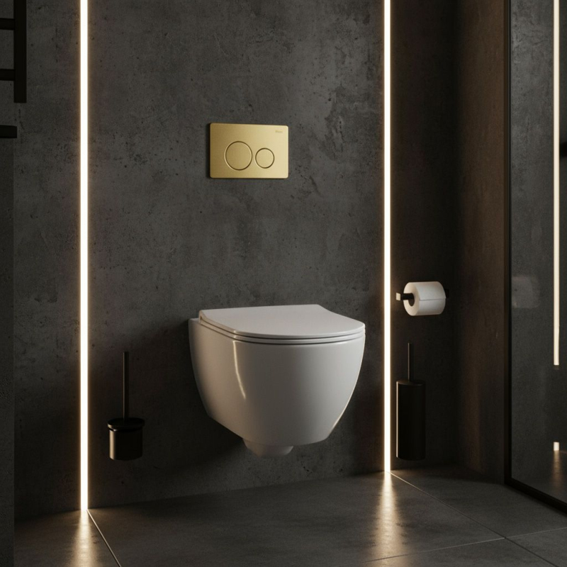 Tlačítko je kompatibilní pouze s novým podomítkovým modulem K011A-Q (Rea-E0054). Hledáte dokonalé zakončení pro svůj podomítkový systém? Objevte splachovací tlačítko Rea Typ I v elegantní povrchové úpravě Kartáčované Zlato. Spojuje minimalistický design s vysokou kvalitou zpracování. Vyrobeno z odolného hliníku, zaručuje pevnost a luxusní vzhled vaší koupelny.Barva: Kartáčované Zlato – povrch dodává tlačítku moderní a elegantní vzhled, který ladí s ostatními zlatými doplňky.Vyrobeno z Hliníku – zajišťuje pevnost, odolnost a odolnost vůči vlhkosti.Dvojitý splachovací mechanismus – dvě kulatá tlačítka (větší a menší) umožňují volbu množství vody a úsporu při používání.Kompatibilita – plně kompatibilní s podomítkovým modulem Rea K011A-Q.Splachovací tlačítko Rea Typ I je ideální volbou pro ty, kteří hledají kvalitu a jednotný styl. Díky hliníkové konstrukci a spolehlivému mechanismu poskytuje dlouhou životnost a komfortní používání.