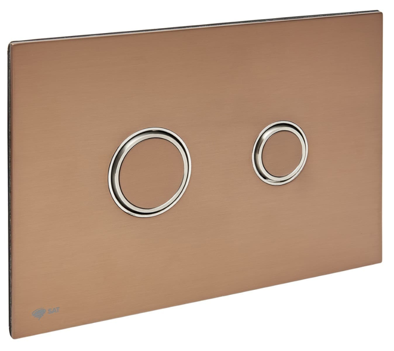 Ovládací tlačítko z kovu v provedení růžová zlatá s matným povrchem. Pro předstěnové instalační systémy a WC nádrže pro zazdění SAT. Tlačítko minimálně vystupuje nad obklad. Dvoučinné mechanické splachování. Údržba běžnými čistícími prostředky používanými v domácnosti na vodovodní armatury a koupelnové doplňky. Odolné proti UV záření a vnějším vlivům. Detailní zpracování laserovou technologií. Povrchová úprava: Růžová zlatá mat, Anti-fingerprint s úpravou proti otiskům prstů. Materiál: nerez s pohledovou povrchovou úpravou PVD.